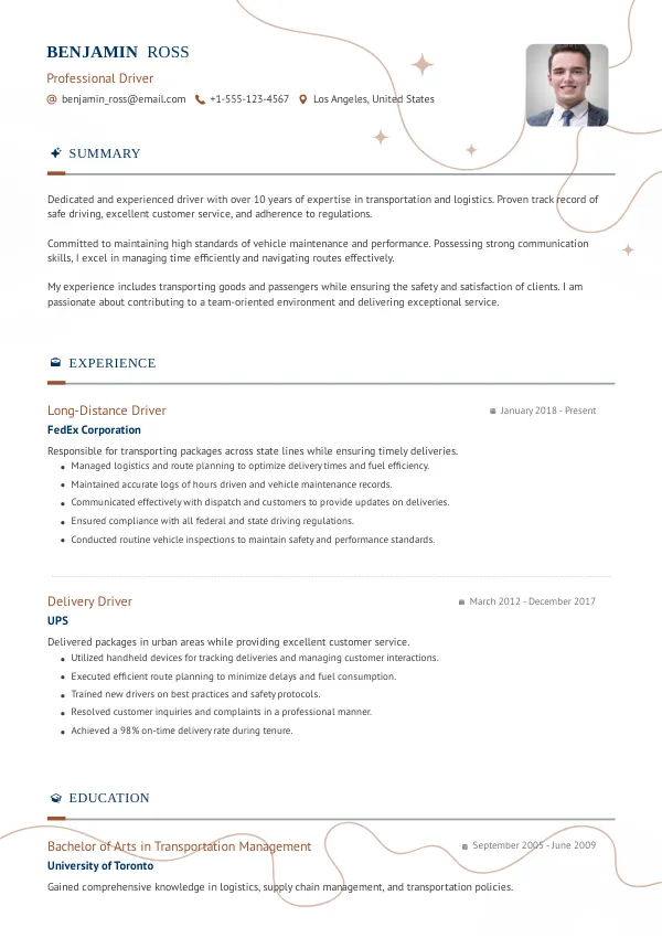 Ready to enhance your resume for Driver positions in the United States? Your resume is not only built for U.S. recruiters, but also structured for international hiring standards. Start today!