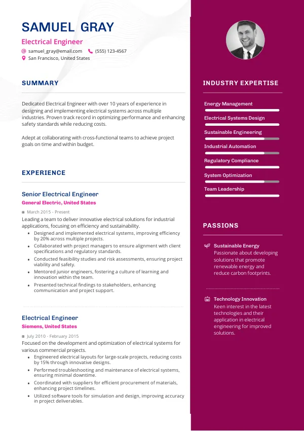A results-focused Electrical Engineer resume that highlights your impact and passes ATS filters.
