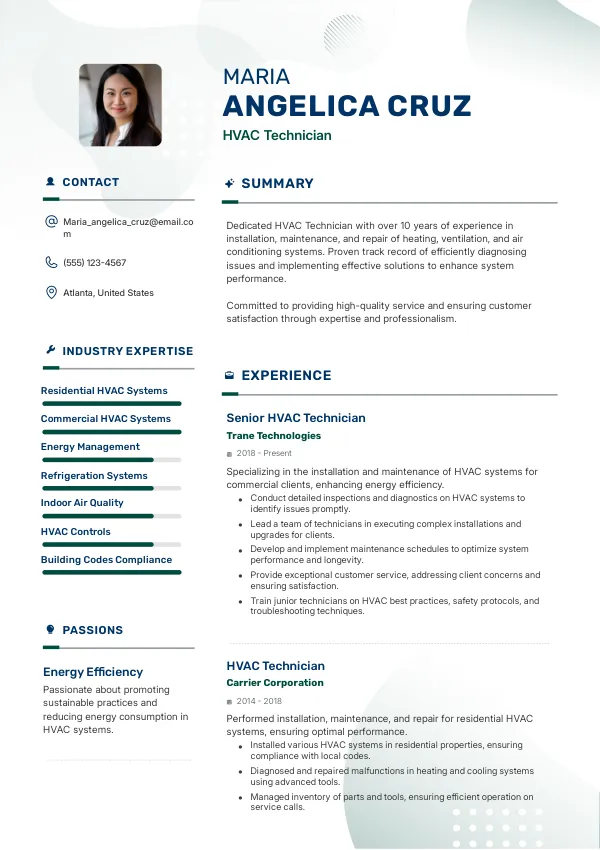 As an HVAC Technician in the United States, your resume must not only showcase your skills but also align with the specific expectations of local recruiters. In a competitive job market, a well-engineered resume can set you apart.