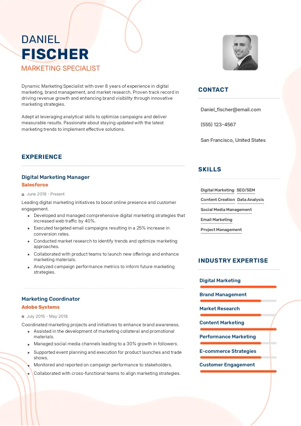 - Tailored resume examples that reflect the expectations of Marketing Specialists in the United States.