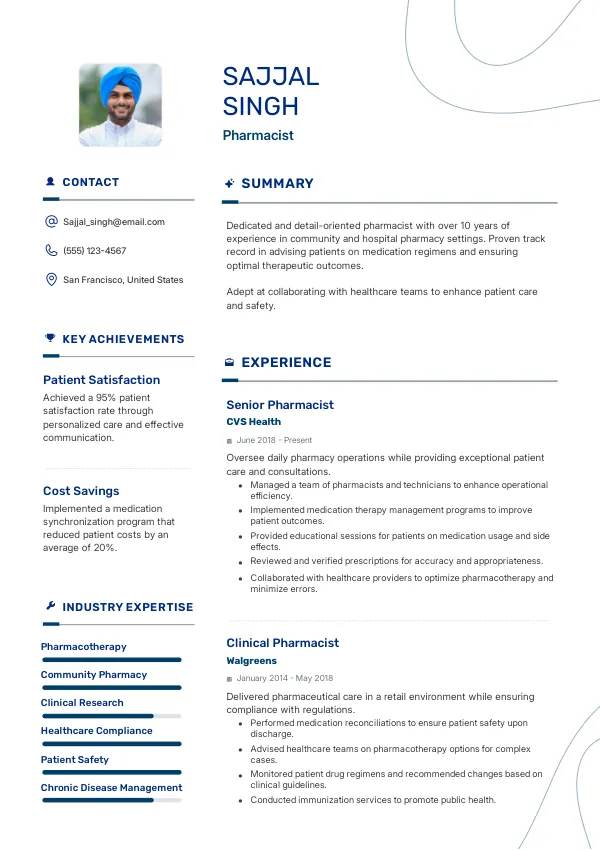 A results-focused Pharmacist resume that highlights your impact and passes ATS filters.