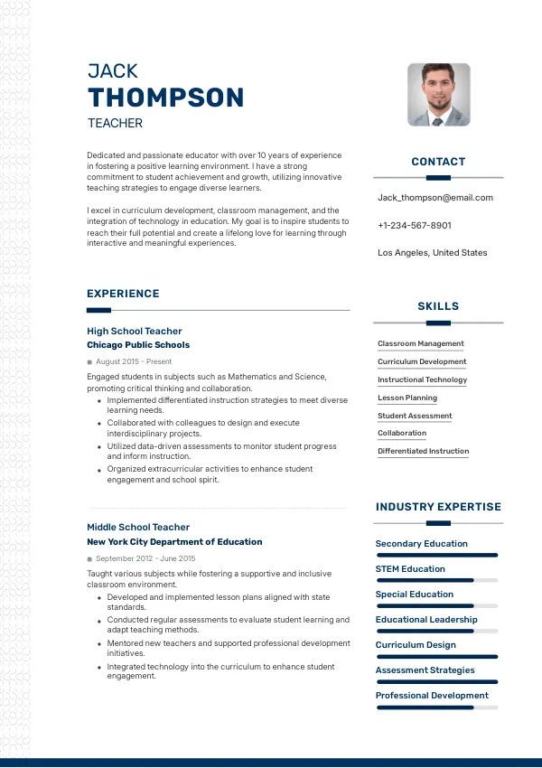 As a Teacher in the United States, your resume must reflect not only your qualifications but also your understanding of local educational standards and recruiter expectations. In a competitive job market, a well-engineered resume can set you apart.